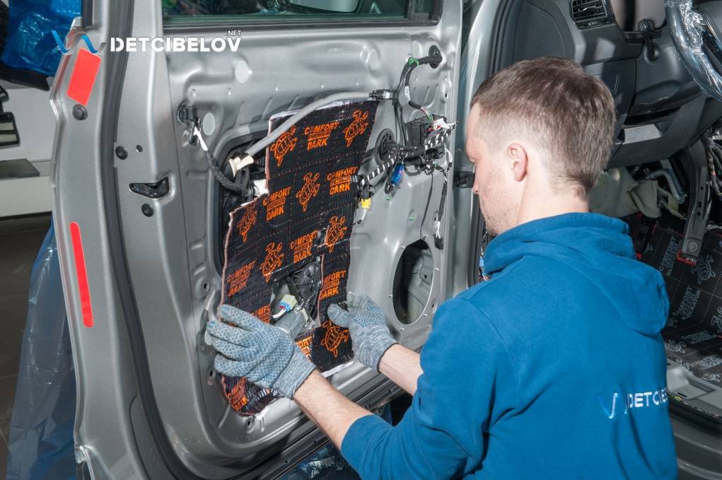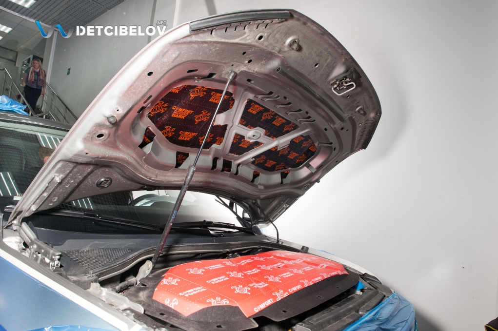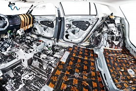• Никаких компромиссов! Только топовые материалы последнего поколения от ТМ "Comfort mat" с максимальной эффективностью и максимальным количеством слоев. Также использование вибродемпфирующих материалов высокой жесткости с разогревом в печи и дополнительной напыляемой шумоизоляцией для колесных арок.