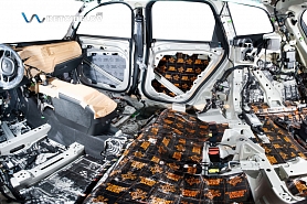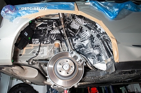 • Никаких компромиссов! Только топовые материалы последнего поколения от ТМ "Comfort mat" с максимальной эффективностью и максимальным количеством слоев. Также использование вибродемпфирующих материалов высокой жесткости с разогревом в печи и дополнительной напыляемой шумоизоляцией для колесных арок.