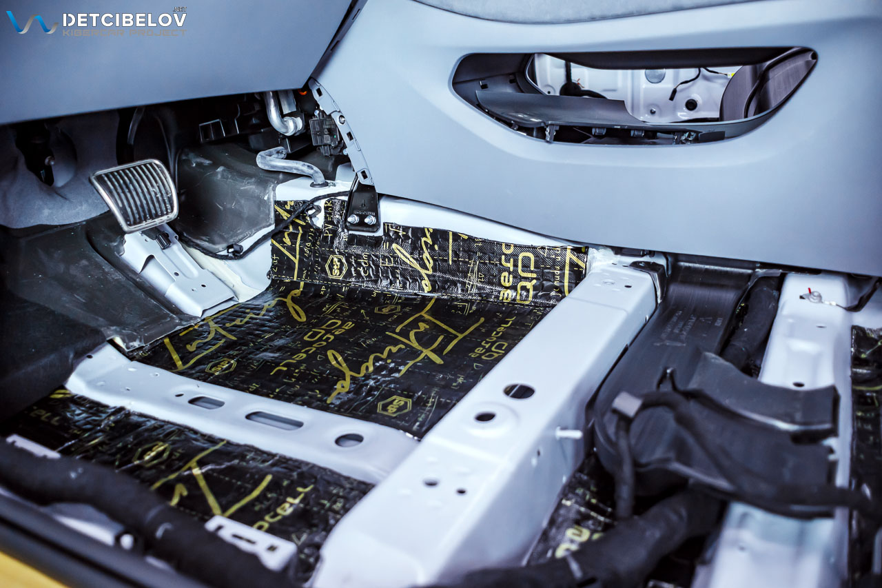 • Никаких компромиссов! Только топовые материалы последнего поколения от ТМ "Comfort mat" с максимальной эффективностью и максимальным количеством слоев. Также использование вибродемпфирующих материалов высокой жесткости с разогревом в печи и дополнительной напыляемой шумоизоляцией для колесных арок.
