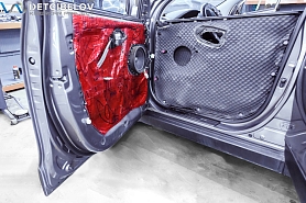 • Самая легкая шумоизоляция автомобиля от ведущих брендов. Она обеспечивает оптимальный результат при однослойной обработке кузова автомобиля. Материал обладает одновременно как шумо-, так и виброизоляционными свойствами, что позволяет укладывать материал в один слой, вместо двух, используемых при многослойной классической шумоизоляции автомобиля. Также мы дополнительно обрабатываем двери акустическим материалом для снижения скрипов и увеличения акустического комфорта.